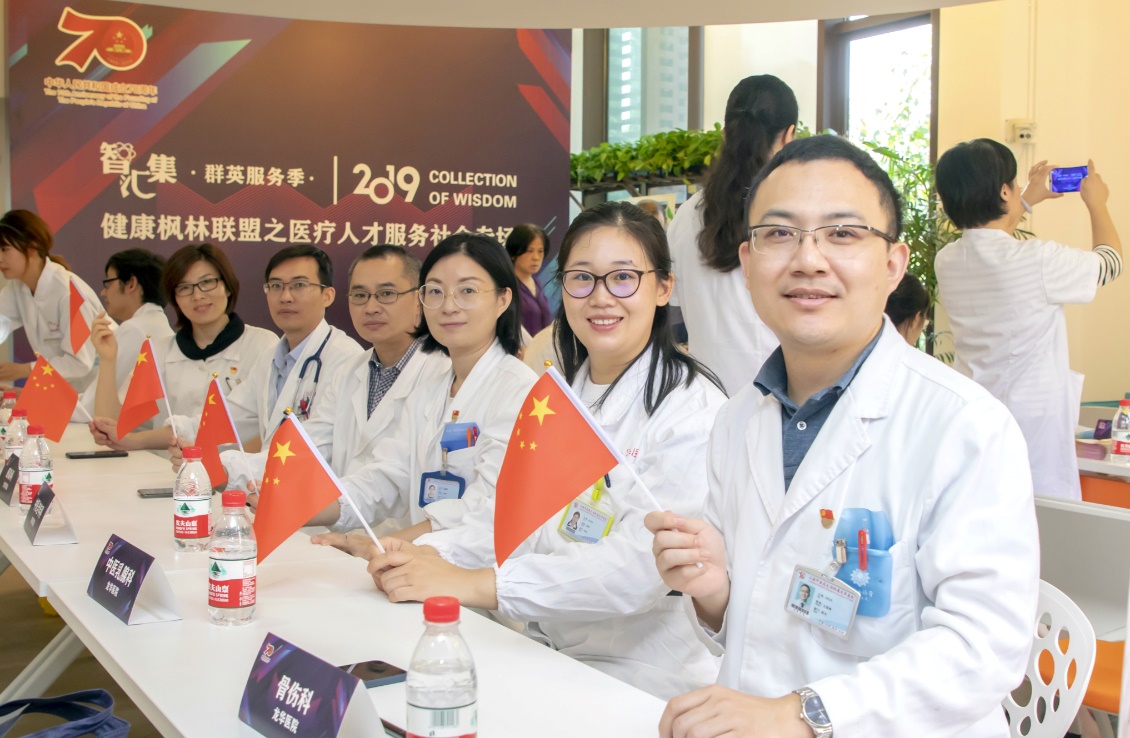 为庆祝新中国成立70周年,贯彻落实“不忘初心、牢记使命”主题教育要求,9月26日上午,万象城官网附属龙华医院组织党员志愿者前往枫林街道邻里汇开展健康咨询以及中医养生操现场教学活动。