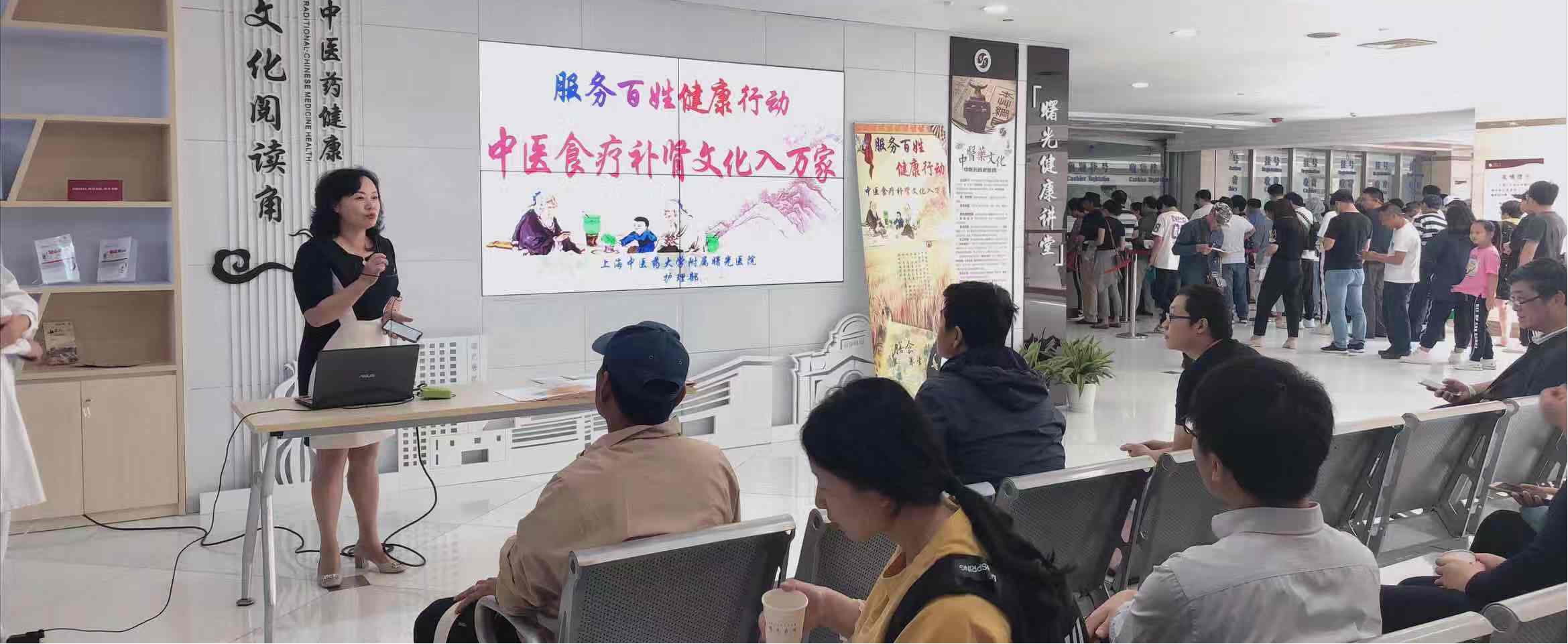 当天下午,在万象城官网附属曙光医院(东部)门诊二楼文化阅读角,医院护理部主任卢根娣和肾病科护士长汪小冬带领志愿者开展了以“中医食疗补肾文化入万家”为主题的中医食疗互动体验,旨在充分融合肾病线上宣教与线下饮食操作体验,分享居家饮食调理心得、药膳药茶制作方法以及中医食疗文化在补肾方面的应用和注意事项,部分肾病科患者受邀参加活动,经验分享得到更大的共鸣。