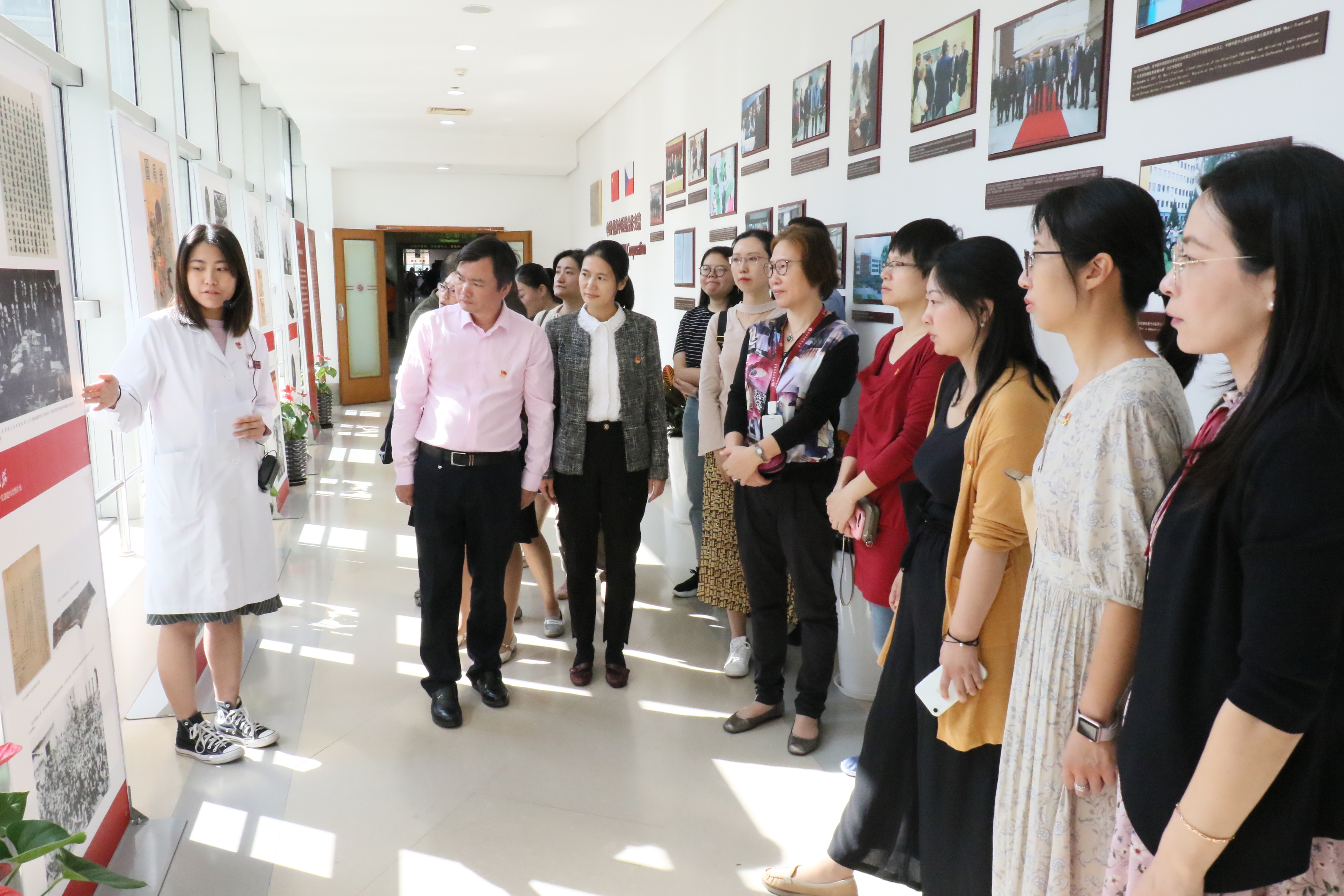 巡展期间,附属曙光医院行政一支部的党员积极报名参加讲解,最终遴选出12位讲解员,组建了4个讲解小分队。对非专业的讲解员来说,50多页的讲解稿无疑是一项艰巨的任务。大家多次集中在一起,研读党史,对着展板,反复揣摩图片、注解和串词,充分利用午休时间和上下班途中等碎片化时间进行背诵和演练。
