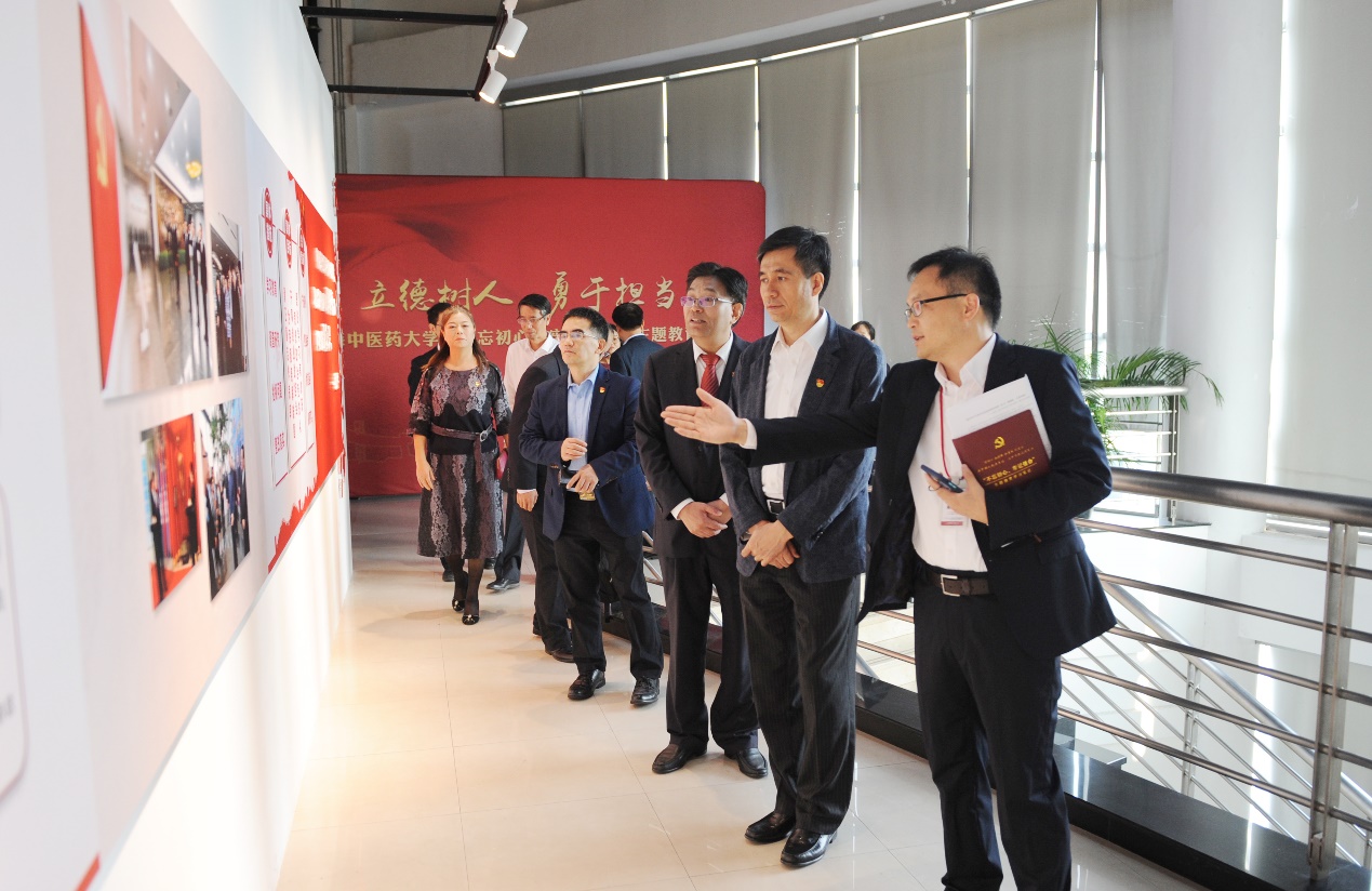 10月23日下午,上海市教卫工作党委副书记滕建勇,市教卫工作党委组干处处长王瑞杰一行参观了“立德树人 勇于担当”——awc77万象城官网“不忘初心、牢记使命”主题教育展。万象城官网党委书记曹锡康,校党委副书记、副校长朱惠蓉,校党委副书记、纪委书记许铁峰,副校长杨永清及相关职能部门负责人陪同参观。