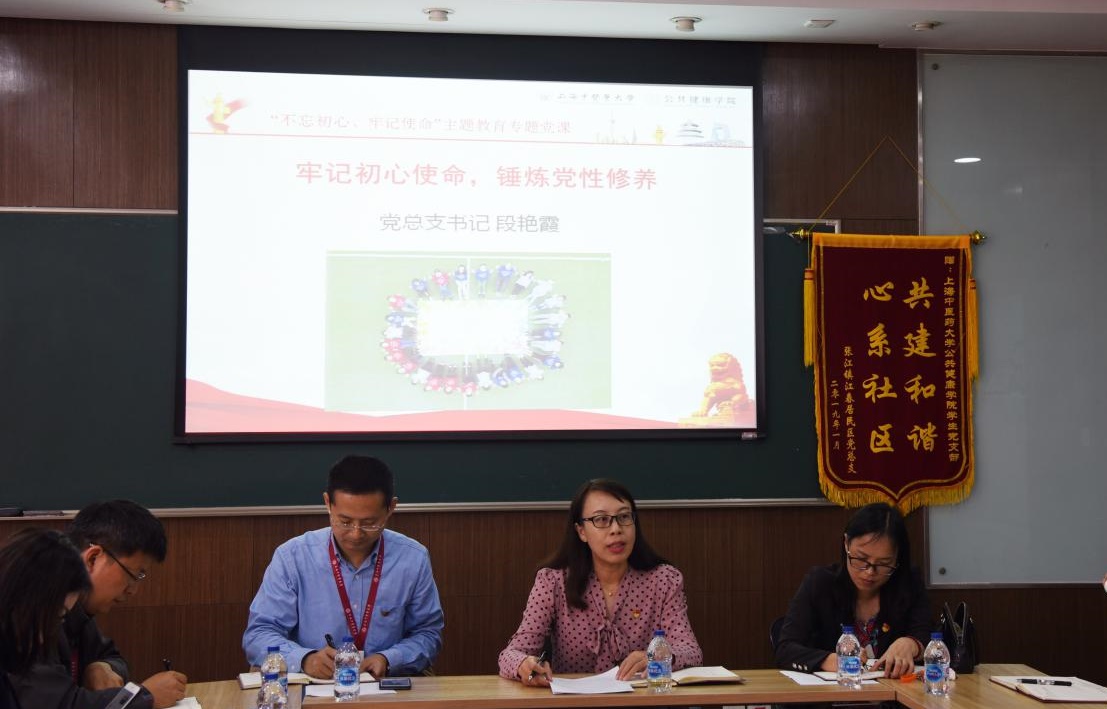 10月23日,公共健康学院党总支举办“不忘初心、牢记使命”主题教育专题党课,学院党总支书记段艳霞,副书记干旦峰,副院长赵海磊、张赟彬分别向学院师生党员讲授党课,校主题教育第五指导小组出席。