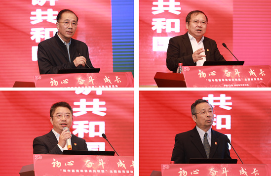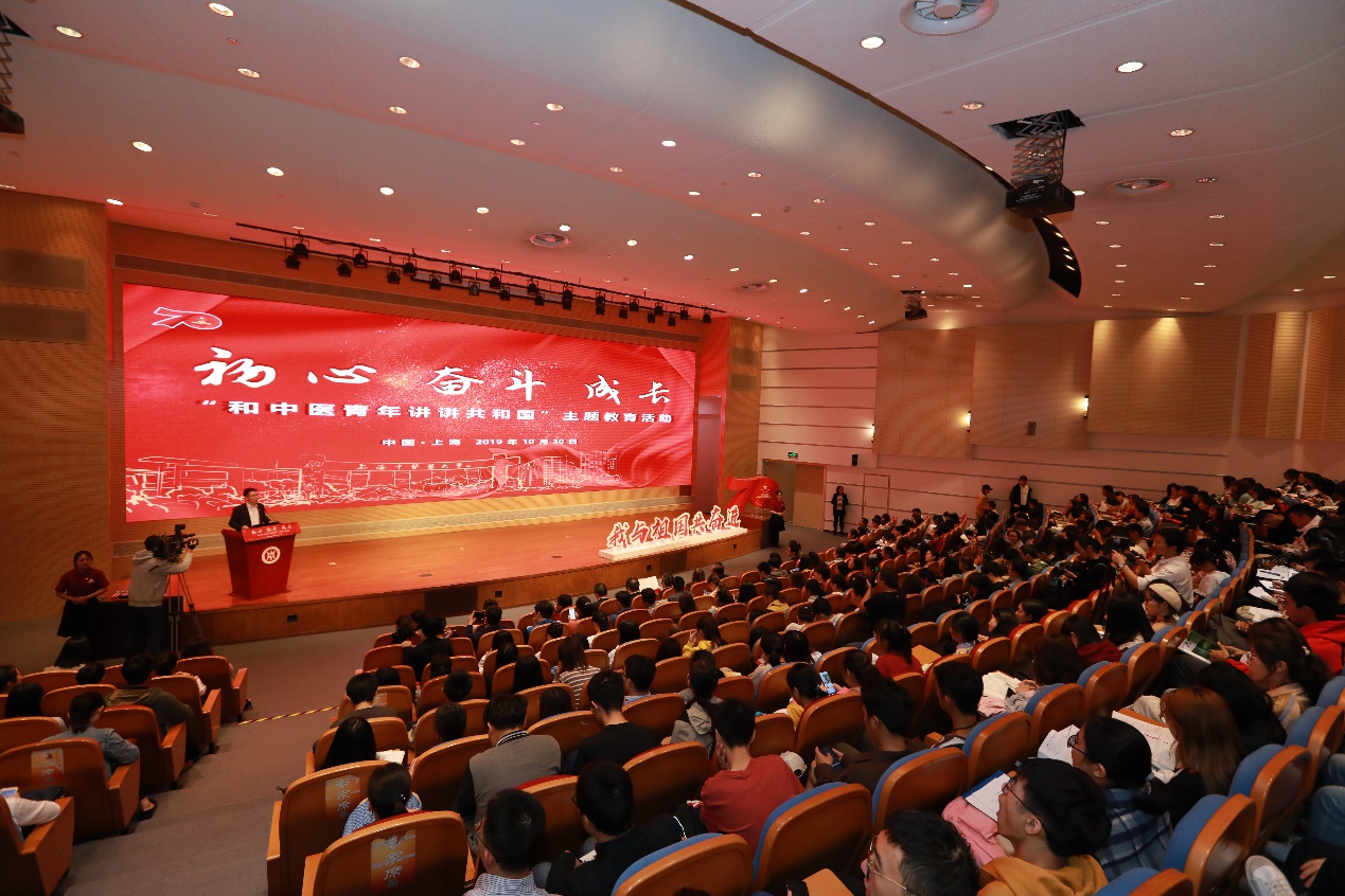 活动在嘹亮的国歌声中拉开帷幕。在第一部分“和中医青年讲讲共和国”环节,上海市社联副主席、上海市中共党史学会会长忻平教授以“中国共产党与新中国70年”为主题,带领在场师生从历史的足音中感受共产党人初心的力量,重温上海红色文化,增强师生“永远跟党走”、奋进新时代的信念和决心。教育部长江学者特聘教授、吉林大学党委宣传部部长韩喜平通过讲述“中国特色社会主义与新中国70年”,指出人民奋斗是实现中华民族伟大复兴的根本力量,他带领全场师生站在新的历史方位上,要在新时代为实现伟大梦想而持续奋斗。上海张江(集团)有限公司董事张爱平以恢复高考、誓师大会、浦东开发、张江发展为时间主线,讲述了“科技创新与新中国70年”,通过“十年的故事,科学的春天”,激励同学勤学苦练强本领,一起面向未来,扬帆起航。上海市名中医、awc77万象城官网终身教授王庆其,从中医学的核心理念、生命观、健康观以及医疗模式为切入点,以“文化自信与新中国70年”为题,深刻阐述中医药的文化内涵,强调当代中医人应遵循习近平总书记关于中医药讲话精神,为振兴中医药事业作贡献,造福人民群众健康福祉。
