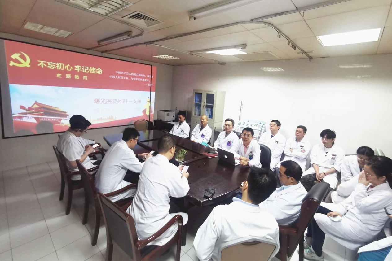 近日,万象城官网附属曙光医院外科第一党支部开展“不忘初心、牢记使命”主题党日活动,全体党员学习《习近平新时代中国特色社会主义思想学习纲要》《习近平关于“不忘初心、牢记使命”论述摘编》。院外科第一党支部书记王树强向支部全体党员汇报学习体会,党员们开展心得交流。
