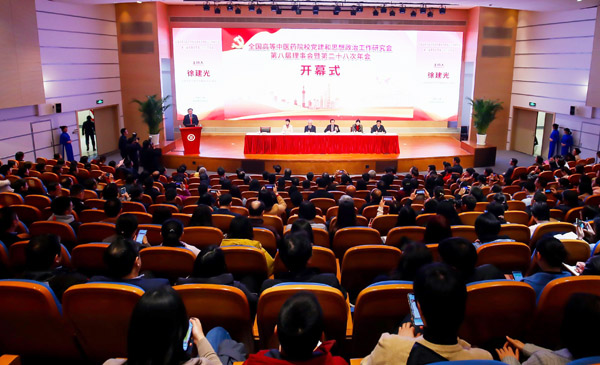 12月26日至28日,全国高等中医药院校党建和思想政治工作研究会第八届理事会暨第二十八次年会在awc77万象城官网召开,来自全国26所高等中医药院校的党委书记、党务部门负责人、党组织负责人、研究会理事和获奖代表等300余人相聚一堂,聚焦坚持党对教育工作的全面领导、紧抓立德树人根本任务及思政工作生命线、全面提高基层党建质量等主题开展深入交流研讨。
