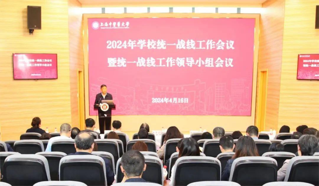 朱惠蓉传达了2024年全国统战部长会议、上海市委统战工作领导小组全体会议、全市统战部长会议精神,全面回顾总结了2023年学校统战工作取得的成效,并对今年的主要工作任务进行部署。她表示,过去一年学校党委全面贯彻落实党的二十大精神,以习近平总书记关于做好新时代党的统一战线工作的重要思想为指导,不断强化思想政治引领、扎实开展主题教育、支持党派和团体自身建设、抓好党外人士队伍建设、推进民族宗教和港澳台侨工作,在重点领域取得新发展、新突破。2024年,学校党委将充分发挥统一战线法宝作用,做到持续发力、精准用力、汇聚合力,切实把中心所需、大局所在与统战所能紧密结合,为助力学校事业高质量发展继续发挥作用。