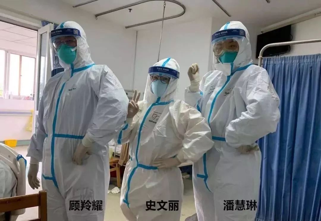 附属岳阳中西医结合医院潘慧璘、史文丽、顾羚耀作为上海第一批危重症患者救治医疗队成员,除夕夜奔赴武汉支援金银潭医院以来,他们已在抗疫一线奋战了十余天。在潘慧璘看护的重症患者中,有一位武汉医生Z先生,潘慧璘结合自身优势,建议他采用中西医结合的治疗方式,配合中药调理、功法训练以促进快速康复,如今Z先生已病愈出院。一日,史文丽完成一项护理操作后走出重症病房时被门上的螺丝钉刮破了防护服,所幸内层隔离衣没有破损,她说:“看着越来越多的患者被治愈,我们看到了胜利的曙光!让我们一起加油,一定能打赢这场没有硝烟的战争!”顾羚耀说,穿着一身隔离衣,大家见面打招呼的方法不是招招手,而变成了互相喷洒消毒剂,“困难总会过去的,美好的日子也不远了吧!”。