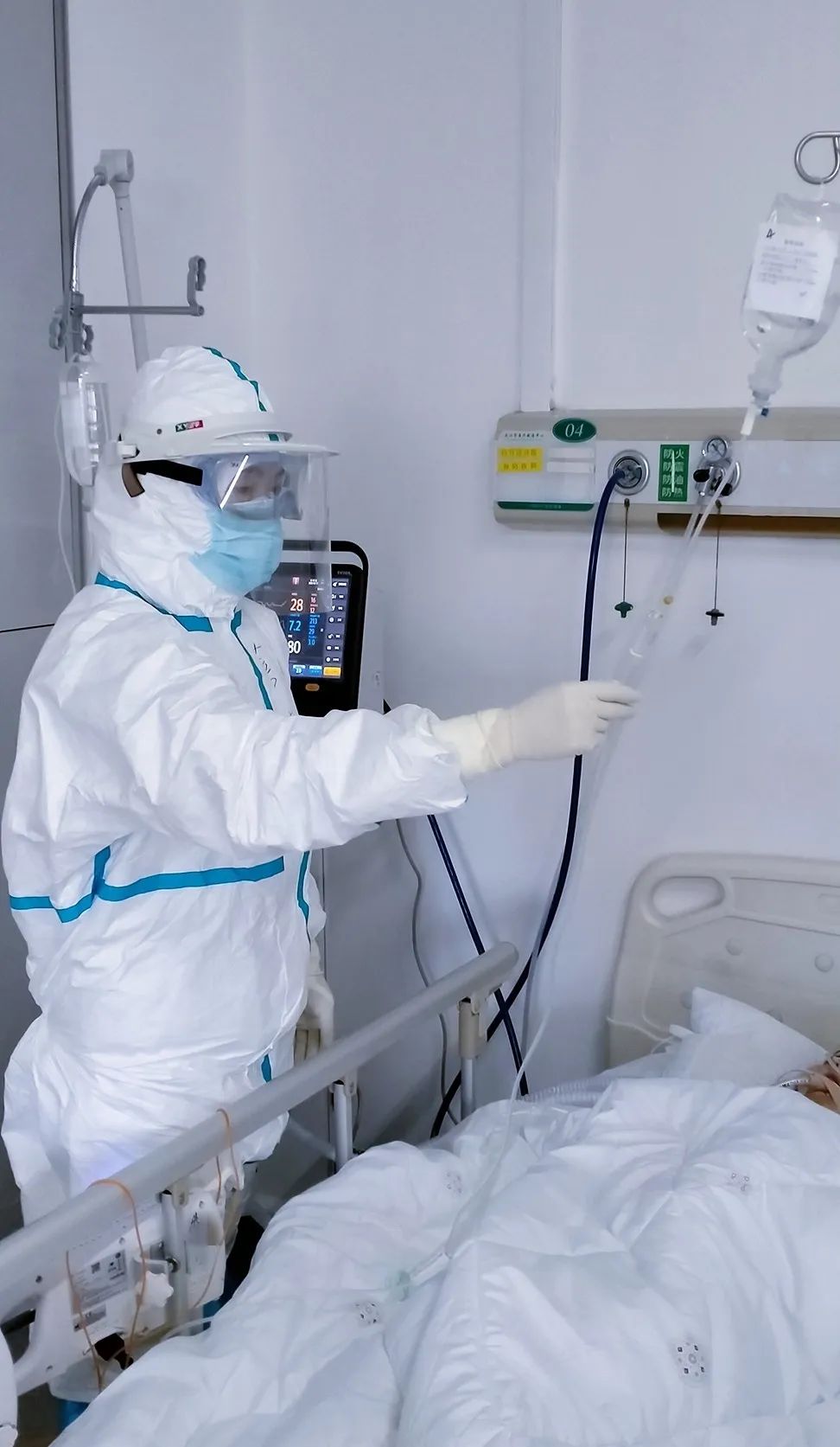 樊洁琼负责的一些病人需要用无创呼吸机,喂饭时要脱下病人的面罩,每喂上一两口,病人就因缺氧要重新戴上面罩,一顿饭喂一个多小时是常事。也有因担心病情而烦躁的病人,拔管、拉扯、敲打床沿,樊洁琼会耐心劝解,把管子固定好、把面罩扶正,整理床位,给病人调整到最舒适的角度。奚洁在身先士卒的党员队友的感染下,递交了入党申请书,她说:“我志愿加入中国共产党,敢为人先,不畏艰难,尽我所能,全力以赴抗击疫情,相信在我们的努力下,定能打赢这场战役,凯旋而归!”每日下班后,队员们在医院初步洗消换好干净衣物,到宾馆门口洗手、消毒、换口罩,到宾馆房间后定点放置从医院穿回来的衣服并再次消毒,每一个环节队员们都认真完成,绝不偷懒,蔡俊说:“我们是治病救人的医护人员,也是纪律严明的战士。正是有这样铁一般纪律的队伍,才能战胜疫情!”