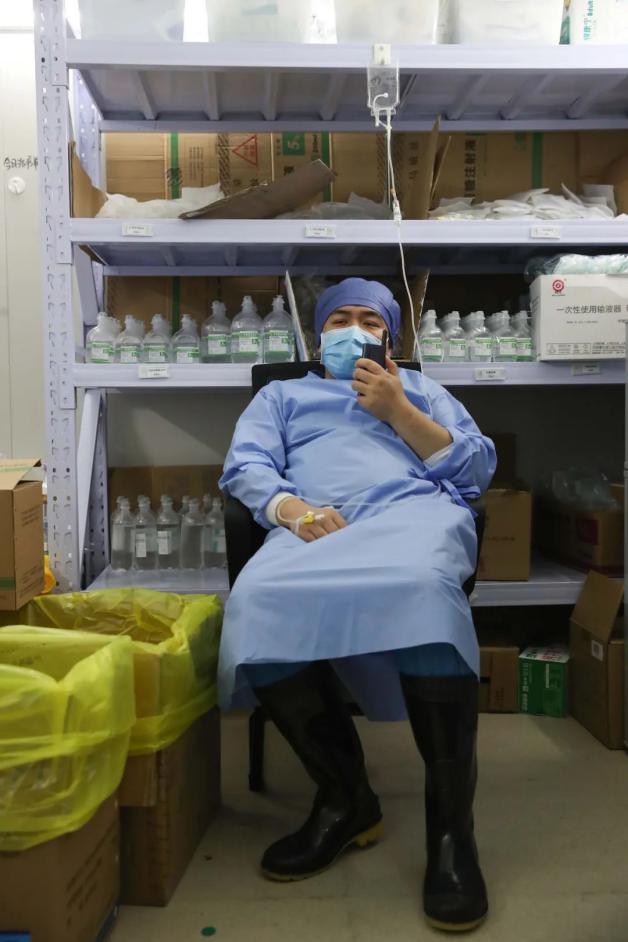 特别是医疗队的护理姐妹们,面对沉重的装备、翻倍的工作量,进舱后频频出现脱水、低血糖、偏头痛、失眠、口腔溃疡的小伙伴更不在少数,有几位护理姐妹甚至直接吐在了口罩中,可是她们出舱后经过简短的休息,马上又换衣服进舱,再次开始繁重的护理工作。重症医学科男护师袁维方阑尾炎发作也还继续坚持工作。