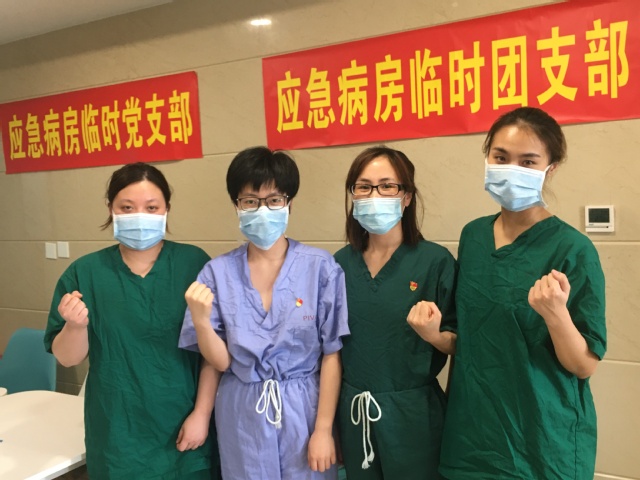 市中医医院先后派出7批15人次医护人员参加新冠肺炎救治工作,图为支援本市公卫中心的几位护理人员