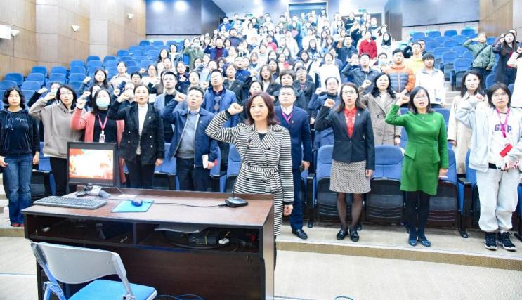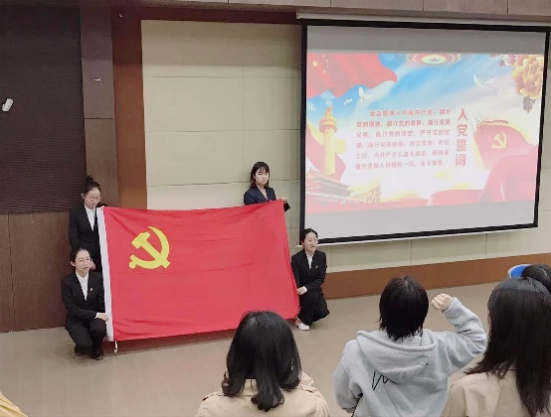 动员讲话后,全体党员在教学实验中心党支部书记可燕带领下共同重温入党誓词,宣誓声音洪亮、高昂,在庄严神圣的情境下,党员深刻感悟中国共产党始终不渝为人民的初心宗旨。