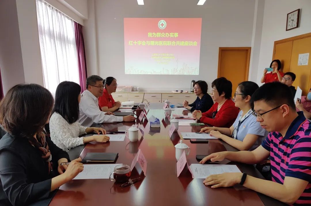曙光医院坚持“走出去”,不断扩大医疗服务公益性,不断探索医院党支部融入城市基层党建的新模式,不断提升服务群众的能力和水平。在第74个世界红十字日这一天,医院行政党总支联合外科、综合等党支部,与市红十字会开展“红十字”主题党日支部联建会,备灾中心常务副主任姚雪华与曙光医院党委书记马俊坚、各党支部书记进行了座谈,话初心、析民意、解民情,围绕“我为群众办实事”展开了热烈的讨论,为办实事、做好事交流服务心得,携手共进。