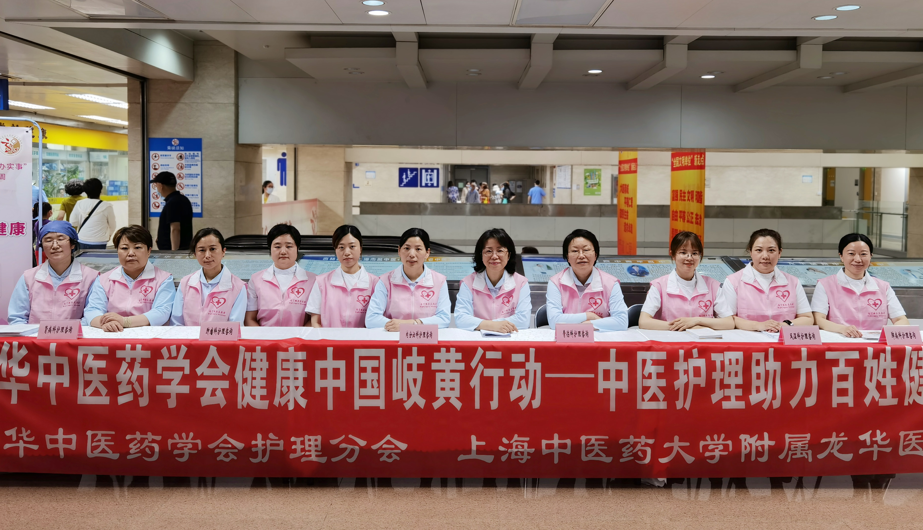 学校及龙华医院2020年度十佳护士在门诊二楼为患者们普及中医药知识,将中医融入于慢病管理,结合中医护理技术开展个性化健康教育,促进人民群众养成健康的生活方式。