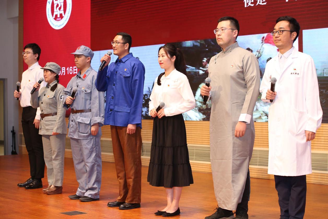 “一个时代有一个时代的主题,一代人有一代人的使命”,由机关党委青年党员教师赵如月原创的作品《走在新时代长征路上的上中医人》歌颂了上中医老一辈名医大家用信仰撑起“教师”二字的责任和使命,将毕生心血奉献给杏林沃土的长征精神,并号召教师们在新时代长征路上永葆初心,为党育人、为国育才,为中医药事业的弘扬发展奋进。《守教育报国初心,担筑梦育人使命》演讲则通过三位分别从事教学、科研和行政工作的青年教师视野,讲述他们在异国他乡开展主题党团日活动、发展中药产业助力脱贫攻坚及两代教师师道传承的故事。一段段承载着爱国情、强国志、报国行的追梦征程,激励着现场师生坚定理想信念,立鸿鹄志、做奋斗者。