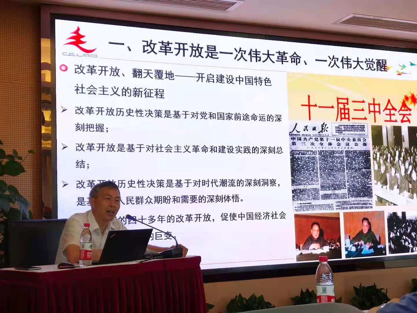 何立胜结合自身党史学习和经济制度研究的成果,从改革开放的时代背景、历史进程、伟大成就和经验启示四个方面讲述改革开放这一举世瞩目的发展奇迹。他指出,改革开放是我们党历史上的一次伟大革命、一次伟大觉醒,改革开放决定了中国发展命运、决定中国经济社会发展的动力与活力,开启建设具有中国特色社会主义的征程。