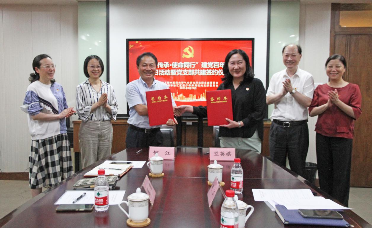 为深入贯彻习近平新时代中国特色社会主义思想,全面落实从严治党要求,深入开展党史学习教育,不断加强党组织建设,6月23日下午,气功研究所在职党支部与徐汇区医疗保障局机关党支部举行“薪火传承·使命同行”建党百年主题党日暨党支部共建签约仪式。徐汇区医疗保障局党组书记、局长陈艳,局党组成员、副局长、机关党支部书记何江,局党组成员、医保中心主任俞波;气功研究所党总支书记、副所长何江,党总支副书记、所长李洁,党总支委员、在职党支部书记竺英祺出席,两支部共20余名党员参加本次活动。仪式由气功研究所何江主持。