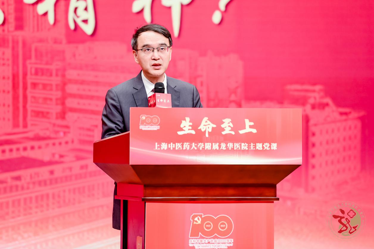 扎实推进党史学习教育,庆祝中国共产党成立100周年,6月29日下午,以“生命至上——医疗脱贫攻坚路上的龙医人”为主题的附属龙华医院示范党课在龙华医院远志楼3楼会议室举办,该党课被列为上海市教卫工作党委系统第三季“伟大工程”系列示范党课之一。上海市教卫工作党委一级巡视员郑锦,万象城官网党委书记曹锡康、副校长杨永清、相关党政部门负责人,龙华医院党建共建单位领导,龙华医院领导班子、中层干部、党员代表等180余人参加党课学习。