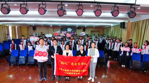 丽春五月,初夏六月,附属曙光医院行政第四党支部“铭记”党史宣讲队的“送党课进校园”活动如火如荼开展。两个月间,宣讲队又走进庙行实验学校、钟山初级中学、上南中学东校、上海市实验学校东校和进才实验小学的校园,为学生们送上一堂堂精彩生动的党课。