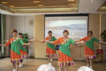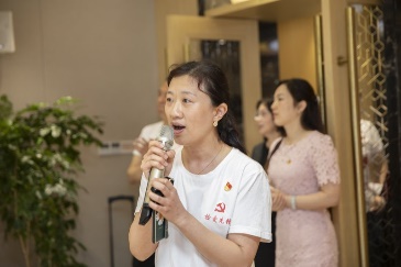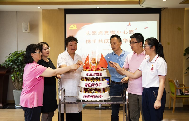 综合三支部党员刘艳独唱经典红歌《红梅赞》,勾起老人们无限美好的回忆。李玲霞和徐惟诚两位党员以真挚的情感和动人的声线,声情并茂地朗诵《可爱的中国》,在抒发爱国爱党之情的同时向老人们传递了温暖和快乐。随着青年党员们“唱支山歌给党听”“再唱山歌给党听”的歌声,颐养院的工作者们身着整齐的服装踏着优雅的舞步将现场气氛推向了高潮。最后大家共同点亮蜡烛,祝伟大的党生日快乐,祝伟大的祖国繁荣昌盛。