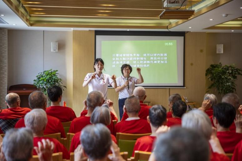 情暖新起航,社工部组织开展“破冰行动”。“如果感到幸福你就拍拍手,如果感到幸福你就拍拍手……”伴随着音乐,老人们玩起了击鼓传花的游戏,青年党员用拍立得记录下“幸福长者们”一张张笑脸;“运动在指尖·养生我看行”调动了现场的气氛,活动在欢声笑语中拉开序幕。
