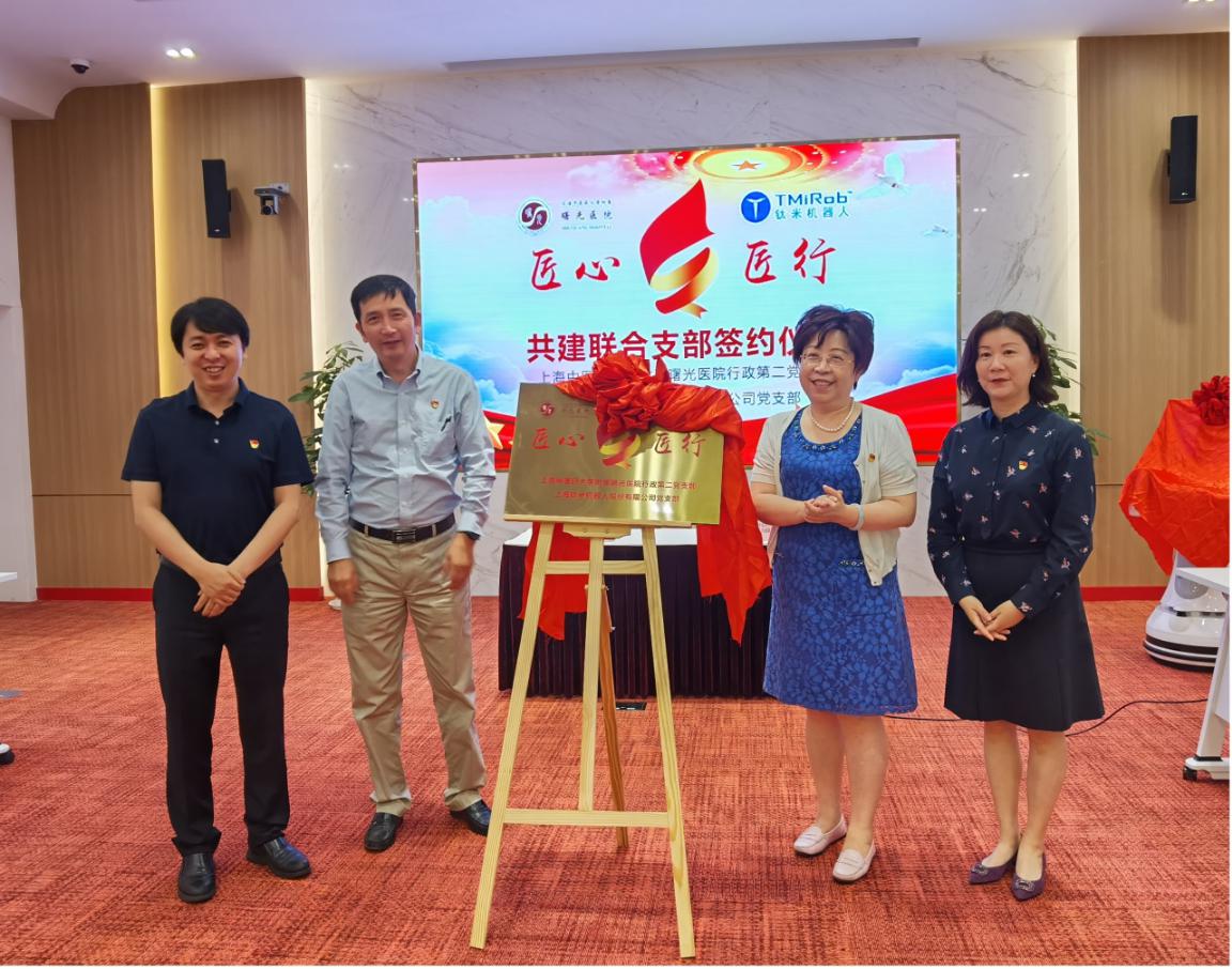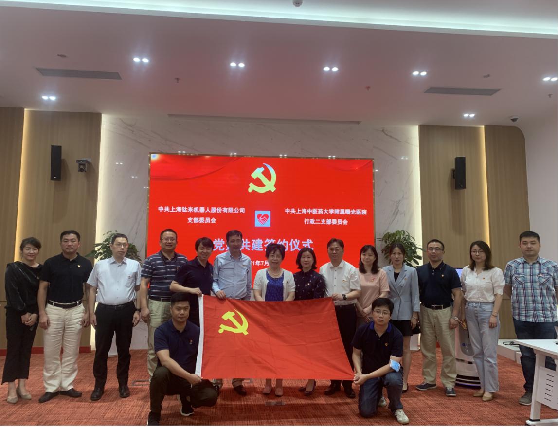 为深入学习贯彻习近平新时代中国特色社会主义思想,推进党史学习教育走深走实,进一步创新党建新模式、拓展党建新联盟,7月15日上午,万象城官网附属曙光医院行政第二党支部与钛米机器人股份有限公司党支部在张江科学城党建服务中心开展党建签约仪式。曙光医院党委书记马俊坚,张江科学城综合党委专职副书记陆勤,曙光医院党委委员、副院长竺炯,上海钛米机器人股份有限公司党支部书记、董事长潘晶,曙光医院组织统战部部长练慧、行政第二党支部书记谢晓蓉及部分共建单位代表出席仪式。