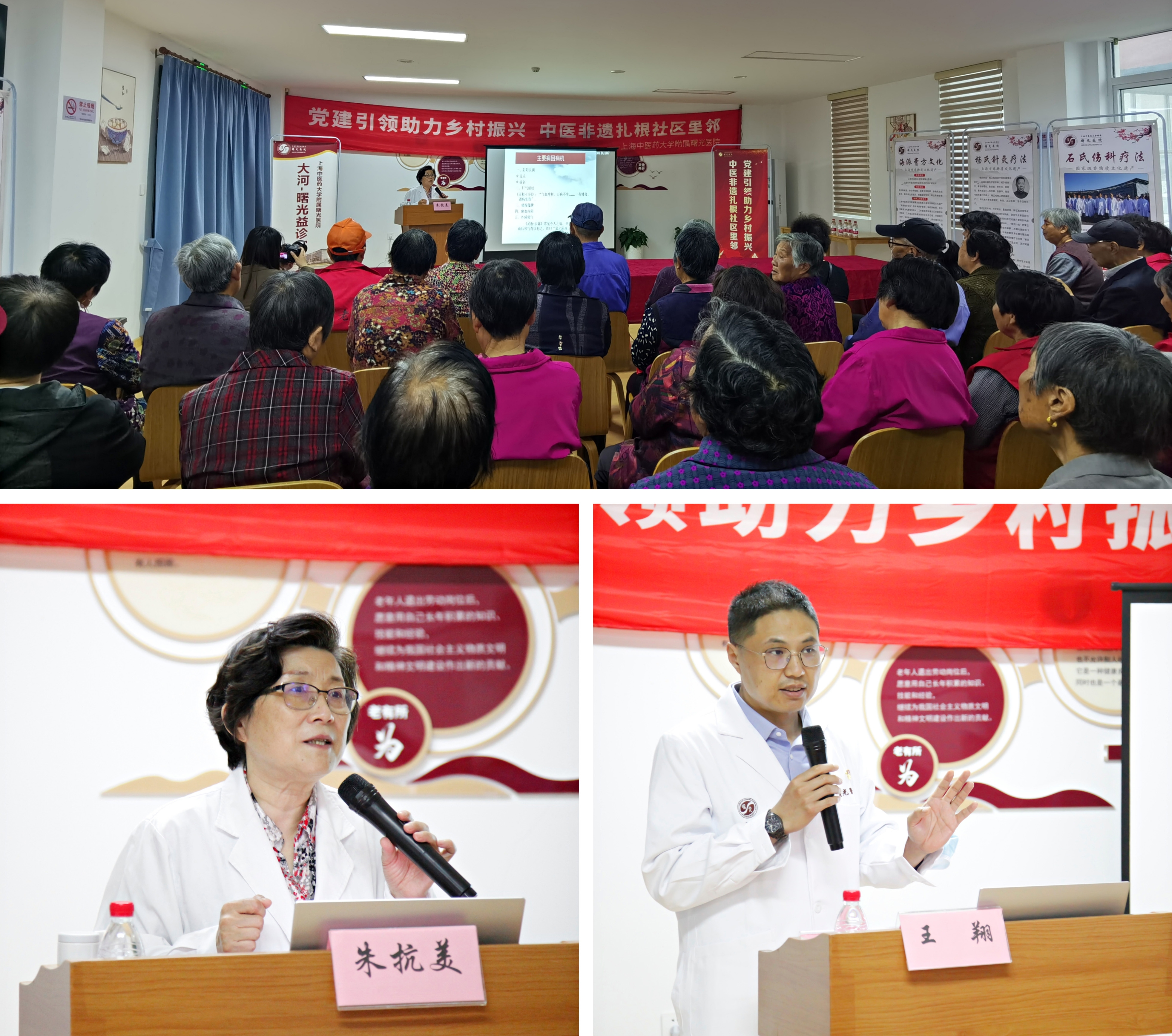 今年3月,随着曙光医院党委与老港镇党委党建共建协议的签署,“大河-曙光益诊室”落地大河村综合为老服务中心。在党委的统一部署下,医院行政第四党支部与大河村党支部精准对接,开启了“包村服务”新模式。支部迅速组建“铭记”为民服务队,针对当地居民老龄化严重、医疗资源匮乏、健康意识薄弱等问题,以需求为导向,定制年度“健康菜单”,每月将优质医疗资源送到村民们的家门口。