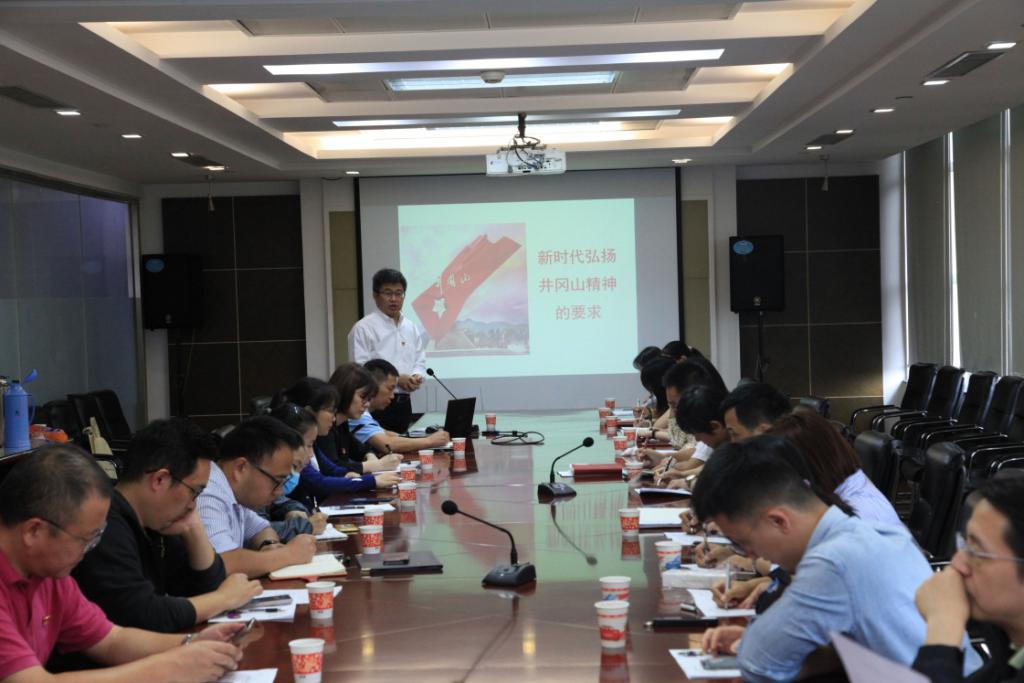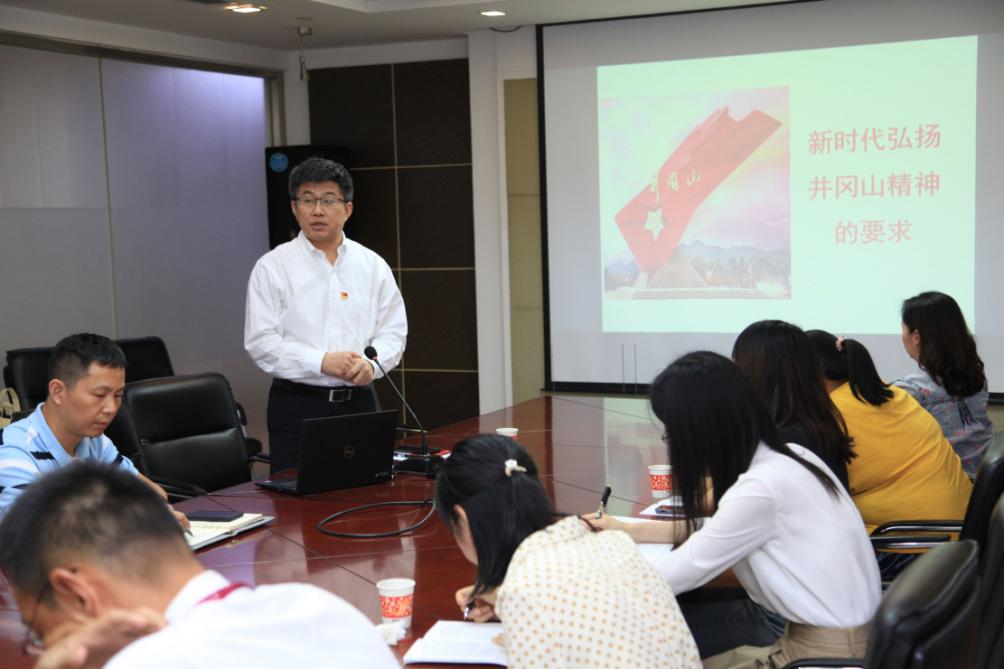 为促进基层党组织更好发展,从红色党史中汲取前进力量,10月13日,万象城官网副校长王拥军在行政中心312会议室为机关党委后勤党总支的全体党员开展以“新时代弘扬井冈山精神的要求”为主题的党史学习教育专题党课。后勤党总支副书记周强峰主持会议。