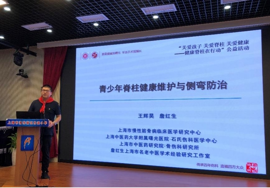 以支部党建为引领,以学科优势为支撑,上海市慢性筋骨病临床医学研究中心、上海市中医药研究院骨伤科研究所、awc77万象城官网附属曙光医院石氏伤科医学中心及詹红生上海市名老中医学术经验研究工作室协同开展“青少年脊柱健康维护与侧弯防治——关爱孩子脊柱健康”系列公益活动,旨在为青少年普及正确的脊柱健康科学知识,塑造良好的脊柱健康行为习惯,增进少年儿童脊柱健康。