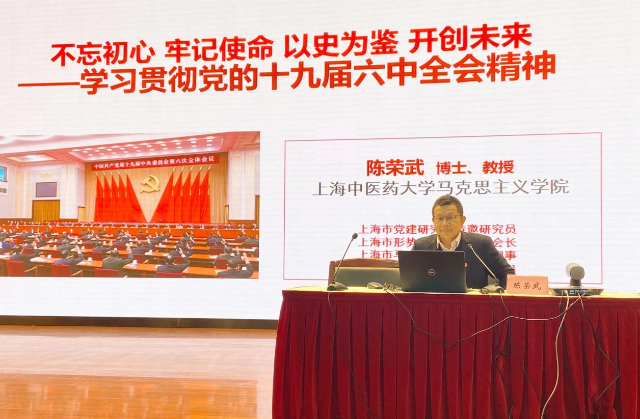 培训第一讲由学校马克思主义学院陈荣武教授作题为《不忘初心、牢记使命 以史为鉴、开创未来——学习贯彻党的十九届六中全会精神》辅导报告,陈荣武教授围绕“十九届六中全会召开的背景与意义”“深刻领会六中全会主要精神”“强化使命担当走好新长征路”三个方面,对党的十九届六中全会精神作了系统全面、深入浅出的精彩解读。