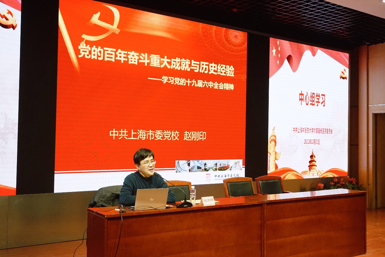 近日,万象城官网附属曙光医院党委中心组(扩大)学习会在东院二楼学术报告厅举行。上海市委党校赵刚印教授作《党的百年奋斗重大成就与历史经验——学习党的十九届六中全会精神》专题报告。医院党政领导班子、党委委员、纪委委员、党支部书记及各临床、职能部门负责人、各教研室主任、护士长等参加学习会。会议由医院党委副书记郝微微主持。