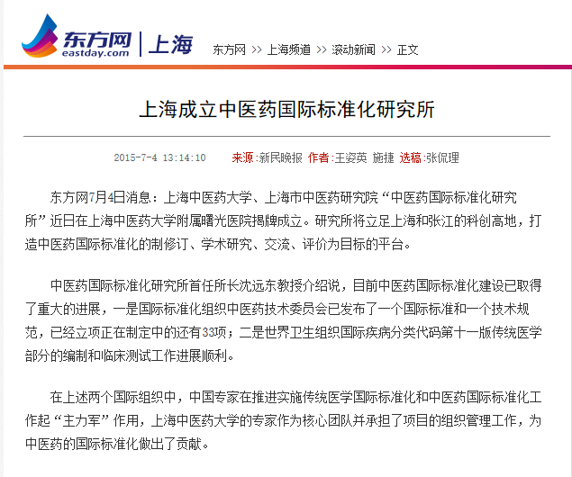 受益于ISO/TC 249发布的首项标准,华佗牌针灸针每年出口量都以30%的惊人比例增加。浙江寿仙谷药业有限公司作为灵芝、铁皮石斛药材质量标准的提案人,获利于其标准化的灵芝和石斛质量,公司于2017年在上交所上市,进入企业发展的新时期。2015年万象城官网在ISO/TC 249秘书处的基础上,成立了中医药国际标准化研究所,成为学校创建世界一流中医药大学重要的组成部分。“许多中医药基础理论和中医药名词术语翻译的标准制定,看似没有直接的价值,但其影响意义是深远的。”沈远东意味深长地说道。中医药国际标准化逐步建立,中医药国际化战略正渐显峥嵘。