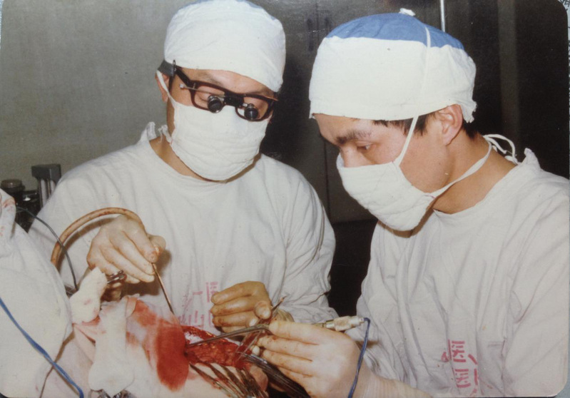 顾国山:当时华山医院神经外科仅有45张床位。我师从中国工程院院士周良辅,我有一副当时最早的神经外科手术用的眼镜,周老师之前一直戴着它做手术,我在离开华山医院的时候,把这副眼镜带在了身边。我很感谢我的老师,包括史玉泉教授、蒋大介教授、杨德泰教授。进入病房以后,他们把知识、经验毫无保留地传授给我。限于当时的学习条件,没有一本系统的神经外科专业书,我们学习完全是靠老师口授和带教。七八十年代的时候,因为没有CT,没有核磁共振,颅内肿瘤或脑出血定位定性非常困难。那时科室里的医生受到非常严格的训练。科室施行24小时住院制,我一周仅可回去一天,一直到结婚、到有了女儿,还是住在医院里24小时不回家。白天查房、手术,晚上就在病房里工作至深夜方回宿舍。在这段时间里,像我们这样一批人实际上受到了很严格的传统医学训练,为治病救人打下了坚实的基础。