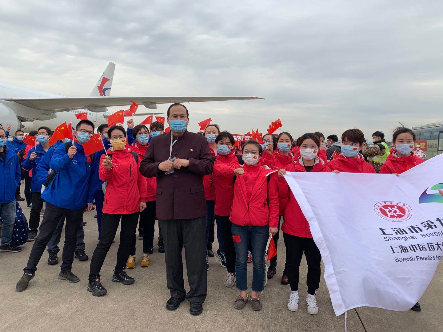 4月6日下午,第七人民医院50名援鄂医护人员圆满完成任务,凯旋返沪