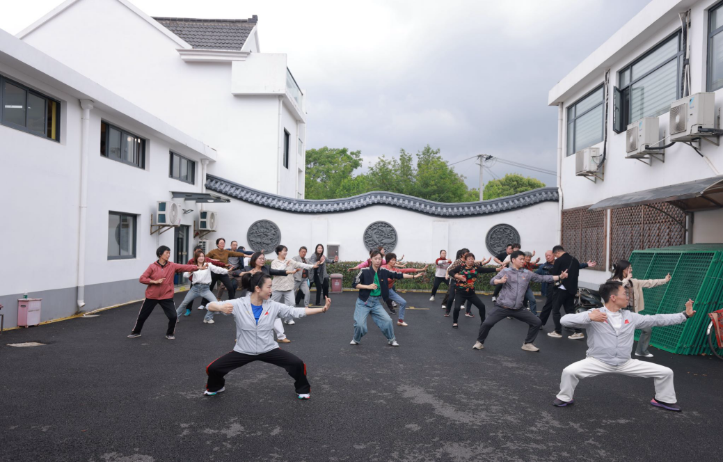 青年教师班主任康萌、秦海龙老师带领全体师生和社区居民共同习练传统养生功法八段锦。从“双手托天理三焦”到“背后七颠百病消”,这场沉浸式的传统养生体验,不仅让大家切身感受到中医药文化的魅力,更了解了预防颈椎病、肩周炎等疾病的实用方法,传统文化传承与健康生活方式完美融合。
