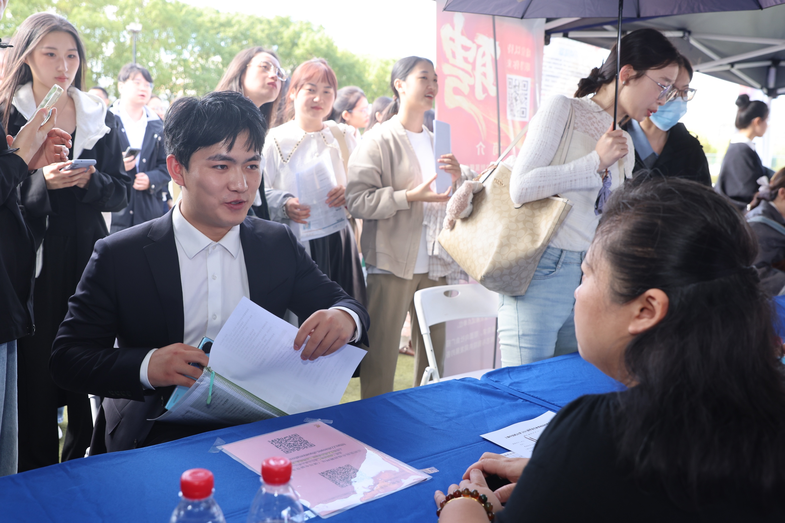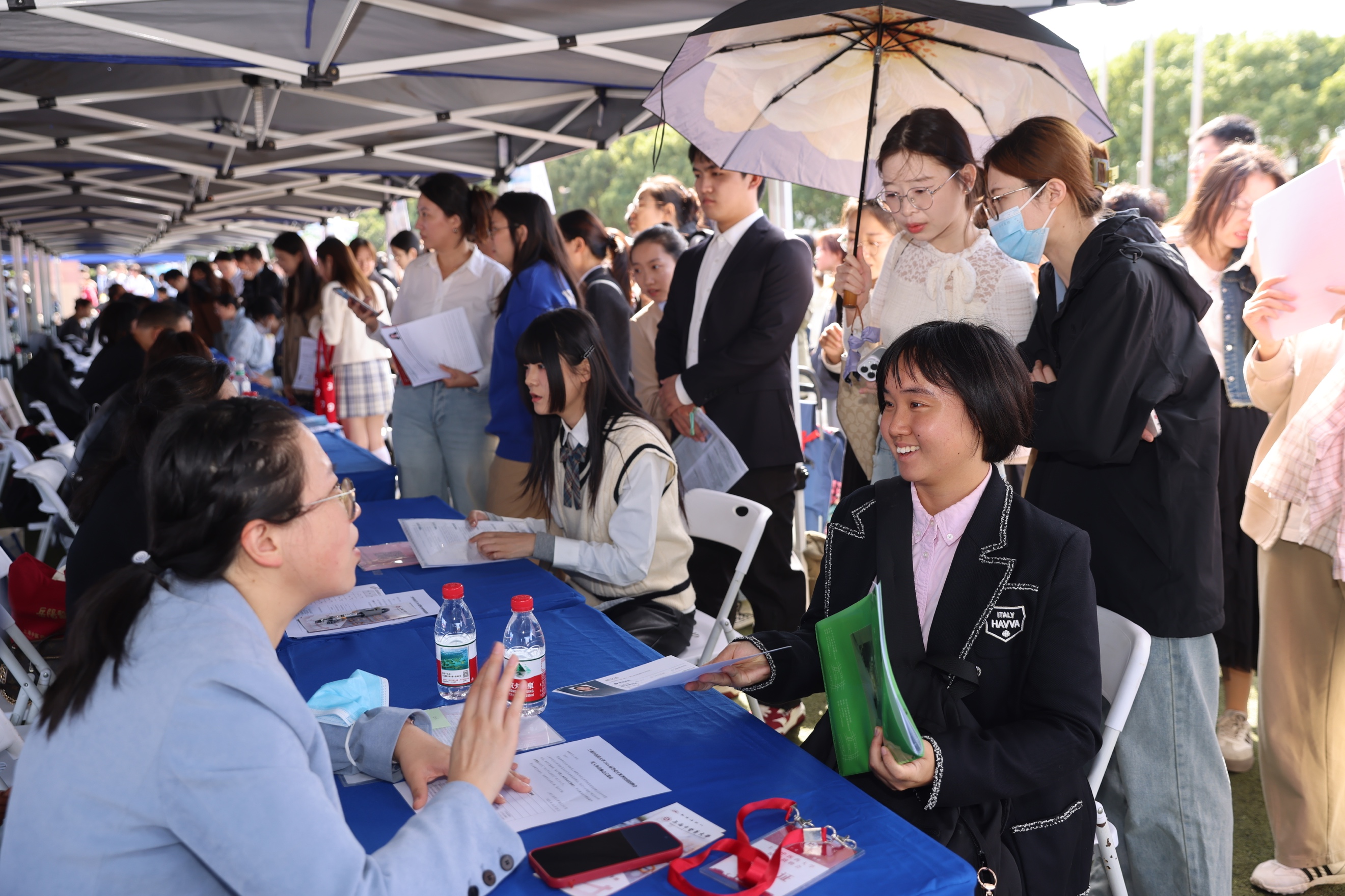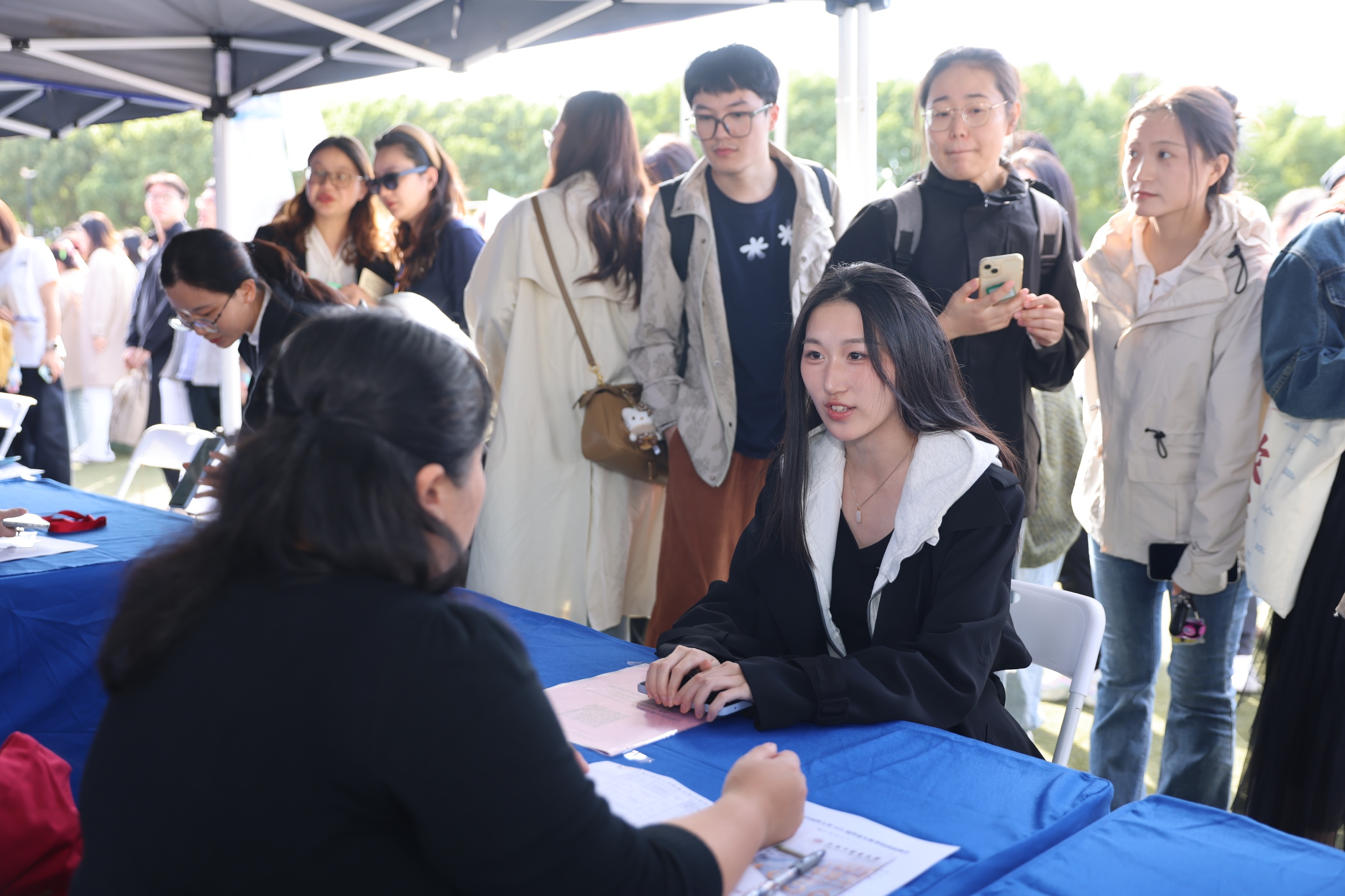 招聘会现场毕业生积极与用人单位展开交流,围绕职业发展及岗位匹配等话题进行深入沟通。中药学院中药学专业博士毕业生李嘉琪表示:“我目前的课题研究方向主要是创新药的研发,今天到招聘会主要投递药物研发岗,希望研发出让老百姓都能用得起的放心药。”岳阳临床医学院全科医学(中医)专业硕士毕业生沈世仲表示:“我的求职意向是成为一名社区卫生工作者,用专业的服务和真诚的态度,做好居民健康的‘守门人’。”康复医学院康复作业治疗专业本科生顾屹雯表示:“这次招聘会有上海申养康复医院,是我们学校的‘岐黄育人实践基地’,我的职业规划就是做老年康复,今天正巧是重阳节,我希望将来能用所学为老年人健康贡献我的专业价值。”