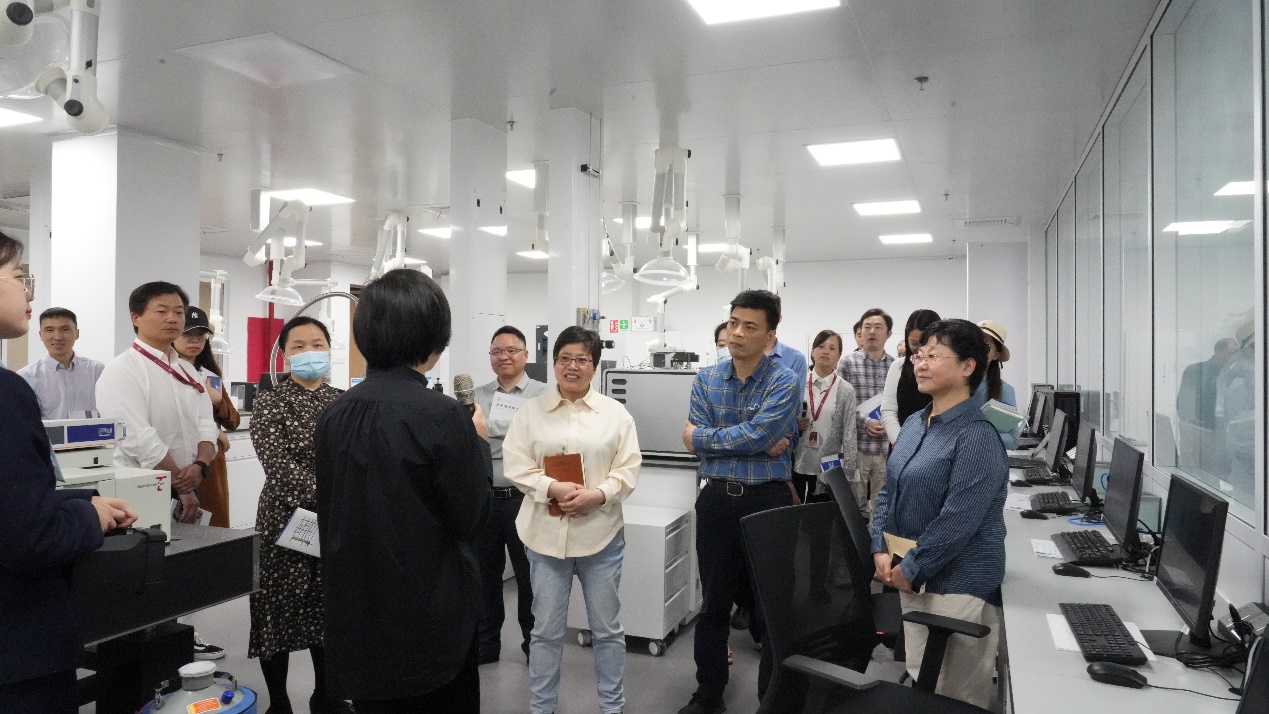 在金承钰的陪同下,基础医学院一行首先观看了上海交通大学张江高等研究院的宣传片,参观了张江展示厅,全面深入地了解了上海交通大学百年校史、上海交通大学张江高等研究院的建设历程、科研布局以及未来愿景。随后重点参观了研究院公共仪器平台及中心实验室,了解了研究院的科研利器和中心实验室运营模式。