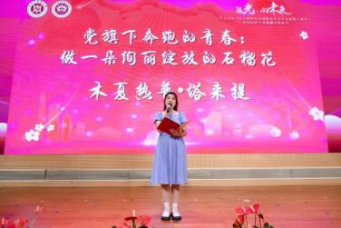在《党旗下,我们奔跑的青春》党员师生主题情景演绎中,学院2021届毕业生沙吉旦木·阿热甫以《胡杨精神守初心 砥砺前行向未来》为题,分享了她的成长经历,作为2022年上海援疆医疗队队员,她的援疆事迹被乌鲁木齐广播电视台专题报道。2019级护理本科班学生党员木夏热普·塔来提刚刚获得2022年度上海大学生年度人物提名奖,作为上海高校“百名学生党员标兵”,她为师生们讲述着新时代新征程上护理学子不断努力、不断精进、勇往直前、青春向党的故事。学院的学生党员们向全体同学发出了“我是什么样子,中国就是什么样子”的奋斗号召,并向教师代表献花,表达感激之情,在护理学院师生改编的主题曲《追光》快闪中,活动气氛被推向高潮。
