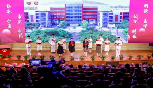 护理学院党总支书记史美育在致辞中代表学院党政领导班子向支持关心学院发展的学校领导、职能部门、各兄弟单位及临床实践教学基地的护理同仁们表达深切敬意和感谢,并鼓励同学们在新时代新征程中,秉持爱心、细心、耐心和责任心走入临床、走近患者,满怀信心,踔厉奋发,为护理事业的发展前进不懈奋斗。