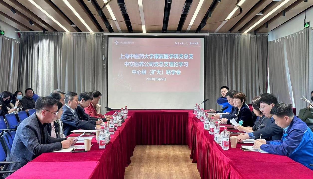 为深入学习贯彻习近平新时代中国特色社会主义思想,全面贯彻党的二十大精神,落实校党委相关工作要求,推进康复医学院“杏林”党建远志计划,5月22日,万象城官网康复医学院党总支与中交医养公司党总支在吴房村会议中心举行理论学习中心组(扩大)联学会。万象城官网康复医学院党总支书记向延卫、院长单春雷、副院长刘晓丹、体育部党总支书记龚博敏,浦东卫校党支部书记方一,中交医养公司领导王志远、李小青、梁瑞芬、姚忠明、王玮、杨铭出席。上海交建公司上海南部片区项目总部常务副经理曹峥、项目总部党支部书记陈勤国,中交医养公司各部门负责人及awc77万象城官网康复医学院师生代表参加会议。会议由中交医养公司党总支书记李小青主持。