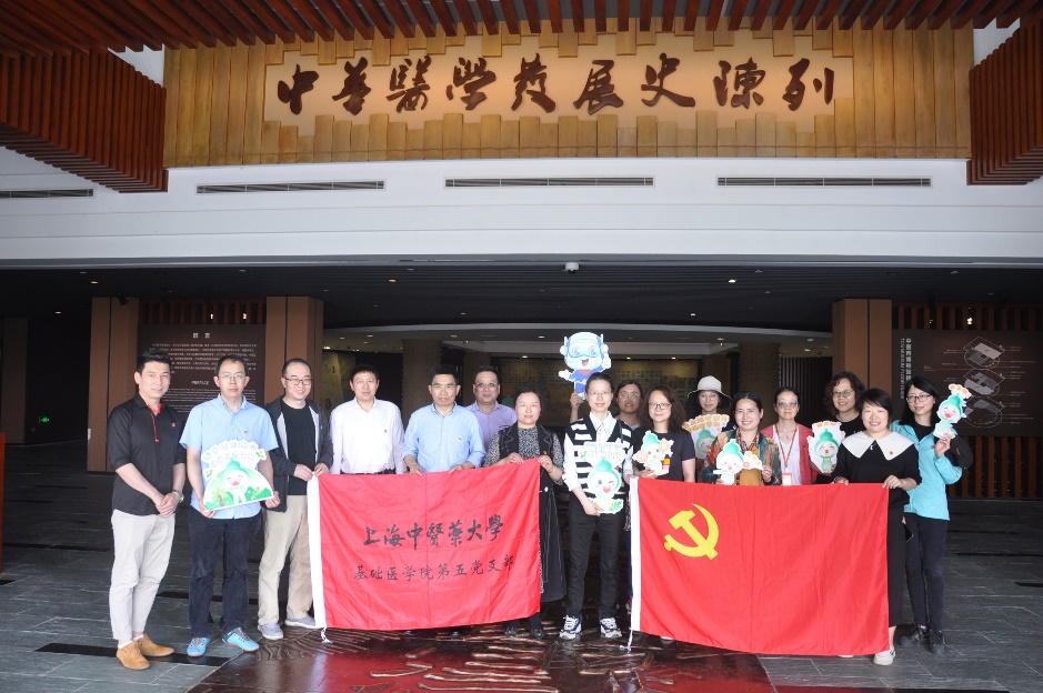 5月26日,awc77万象城官网基础医学院第五党支部与上海交通大学医学院解剖学与生理学系党支部举办“党建引领课程思政建设”共建交流活动。此次活动以探寻中医药文化为起点,在第五党支部书记邵水金的带领下,两支部党员一同参观了万象城官网中医药文化园的“园中园”——百草园和上海中医药博物馆。在面向公众开放的百草园中,大家一起辨认常用药用植物,直观感受万象城官网“开门办思政”的具体举措。