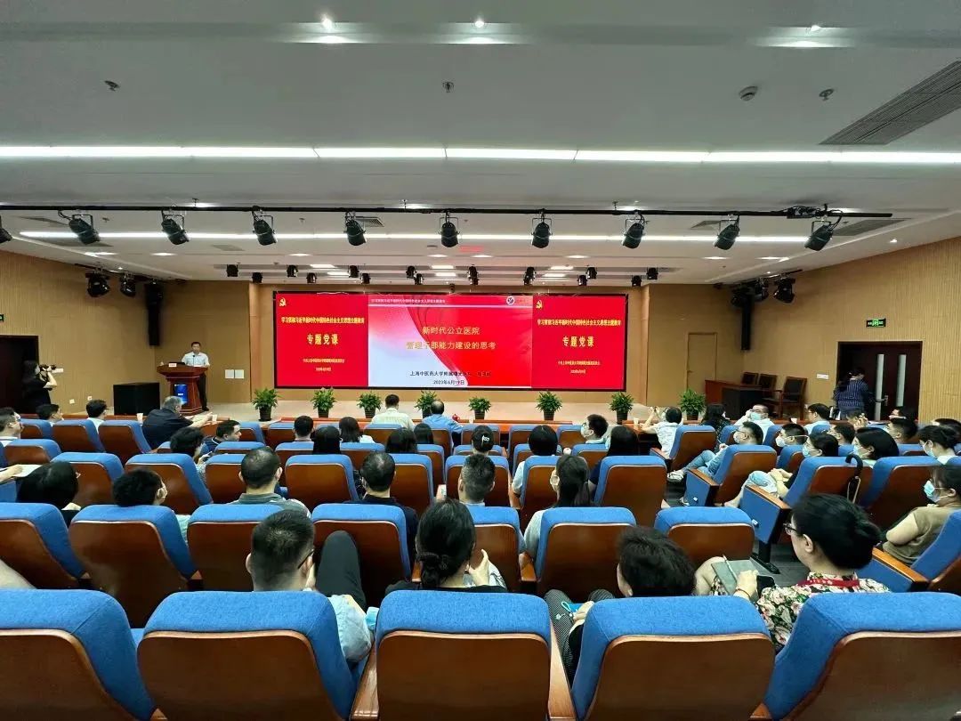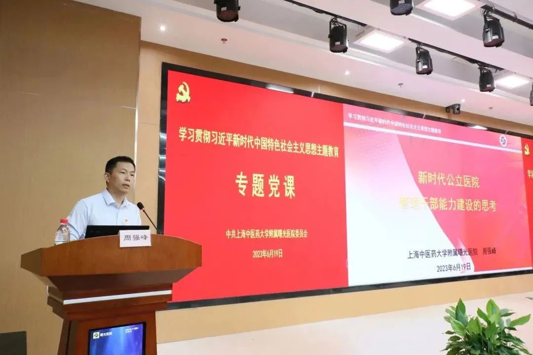 为进一步推动学习贯彻习近平新时代中国特色社会主义思想主题教育走深走实,引导鼓励医院职能部门干部切实提高能力本领、强化服务意识,曙光医院党委于6月19日中午在东院科教楼一楼学术报告厅召开主题教育专题党课。专题党课以《新时代公立医院管理干部能力建设的思考》为题,党委书记周强峰担任主讲人,由党委副书记、院长房敏主持。awc77万象城官网主题教育第一联络组组长、校党建督导员陶建生教授和校主题教育第一联络组成员、康复医学院党总支组织员周家伟到会指导。医院党政领导班子成员、职能部门负责人、院青年管理骨干培训班学员等认真聆听了党课。