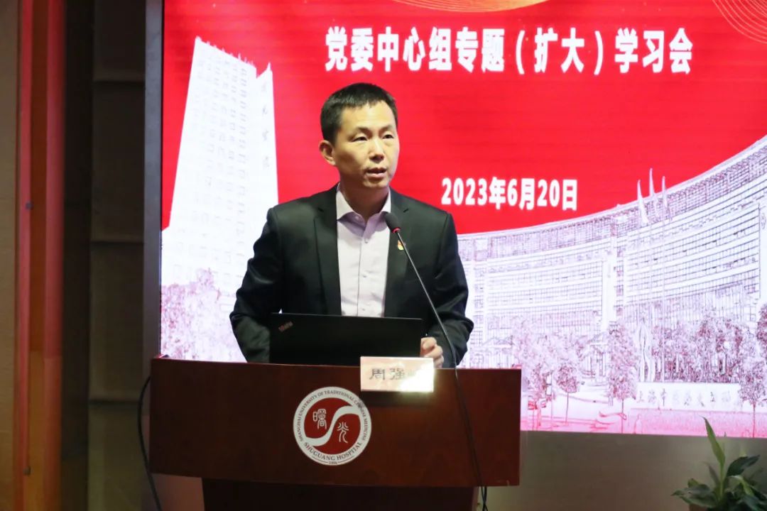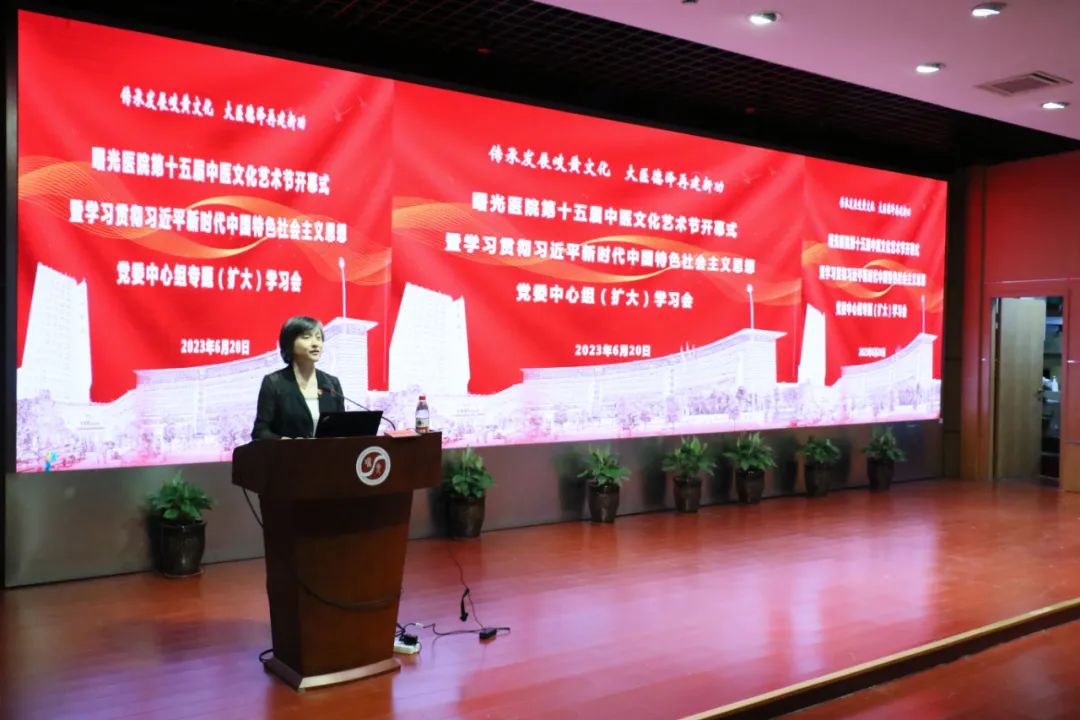 6月20日下午,曙光医院召开第十五届中医文化艺术节开幕式暨党委中心组(扩大)学习会。医院党政领导班子、党委委员、纪委委员、党总支书记、支部书记、各职能部门负责人、临床科室科主任、研究室主任、教研室主任、科护士长、护士长、党支部纪检委员、团委委员以及医院青年管理骨干培训班学员等参会。awc77万象城官网终身教授、中华中医药学会医古文分会名誉主任段逸山教授应邀出席。会议由曙光医院党委副书记、纪委书记郝微微主持。
