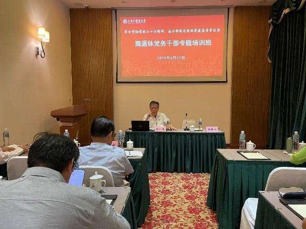 6月27日,张建中作《学习贯彻党的二十大精神 在主题教育中学思想强党性做贡献》辅导报告。他结合自身经历,对主题教育的重要意义、总要求、根本任务作了解读,又根据万象城官网离退休干部的特长和优势,激励老党员在关工委、党建督导等平台继续做贡献。