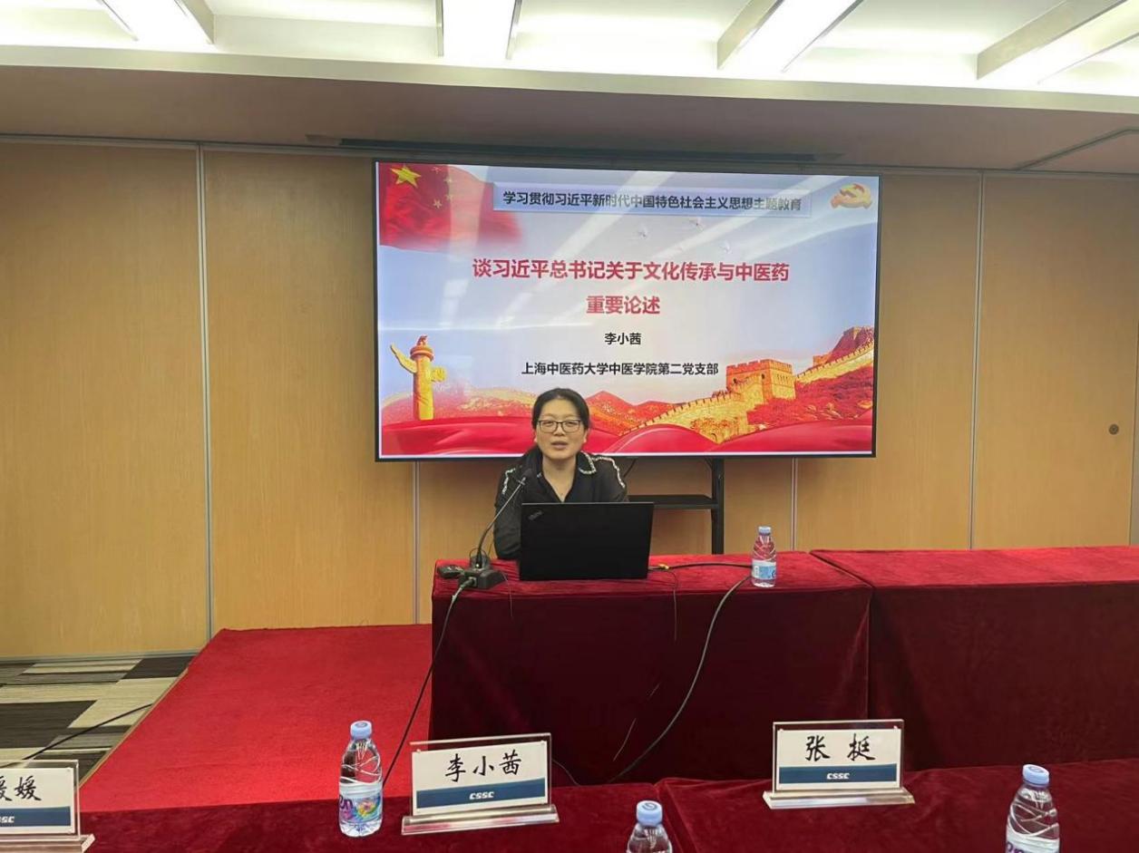 随后,李小茜作题为“学习习近平总书记关于文化传承与中医药重要论述”的主题教育专题党课。她从习近平总书记在文化传承发展座谈会上的重要讲话精神说起,指出了习近平总书记对中医药工作作出一系列重要论述对中医药发展的重要指导意义,同时通过实例讲解习近平总书记如何运用中医术语来阐述治国理政相关内容。李小茜强调,中医药是中华优秀传统文化的杰出代表,传承和弘扬中华优秀传统文化需要大力发展中医药。
