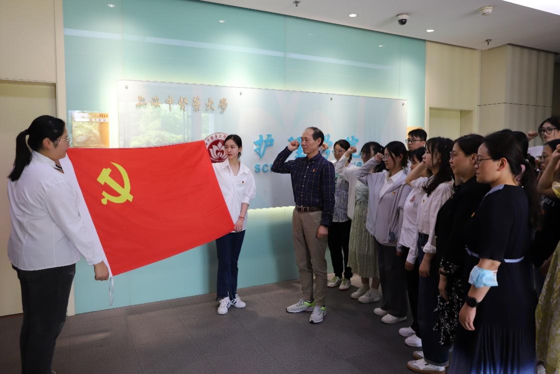 紧接着,护理学院党总支书记史美育带领参加学习的全体党员重温入党誓词,面向党旗,庄严宣誓。