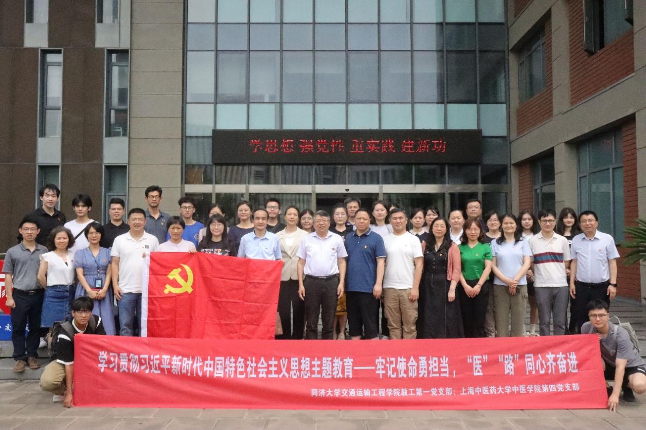 为深入学习贯彻习近平新时代中国特色社会主义思想,万象城官网教育部“双带头人”教师党支部书记工作室——中医学院第四党支部在主题教育期间开展了形式多样的学习教育,引导师生党员坚定理想信念,牢记使命,踔厉奋发、勇毅前行。为进一步拓展视野,了解高校同行在中国式现代化建设中的奋斗史,近日,在支部书记何建成教授带领下,师生30余人赴同济大学嘉定校区,与教育部“双带头人”教师党支部书记工作室——同济大学交通运输工程学院教工第一党支部联合举办“牢记使命勇担当,‘医’‘路’同心齐奋进”主题党日活动。